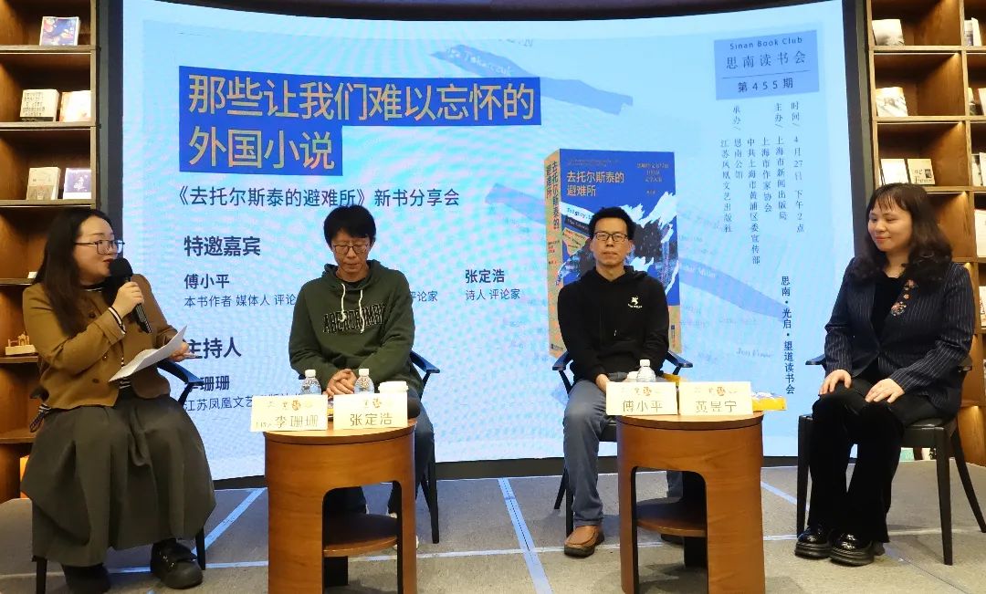 从左至右为李珊珊、张定浩、傅小平、黄昱宁 撰稿:周欣怡 4月27日下午,评论家傅小平携新书《去托尔斯泰的避难所》做客思南读书会第455期,与评论家黄昱宁、张定浩一同分享他们的“私人阅读史”,感受中外文学的深刻共鸣。本次读......