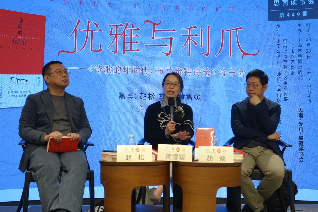 从左至右为赵松、黄雪媛、胡桑 撰稿:闵佳麟 2024年3月23日下午,广西师范大学出版社编辑程卫平,华东师范大学德语系教师黄雪媛,诗人、学者、同济大学教师胡桑,作家、文学评论家赵松做客思南文学之家,聚焦布莱希特的诗人身份......