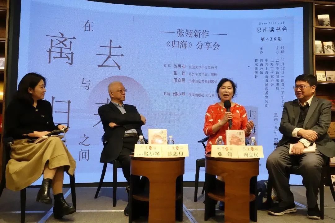 从左至右为姬小琴、陈思和、张翎、周立民 撰稿:蔡圣辉 11月12日下午,海外华文作家张翎携其全新长篇小说《归海》与复旦大学教授陈思和、巴金研究会副会长周立民、编辑姬小琴一同做客思南读书会第436期,与读者共同探讨女性的精......