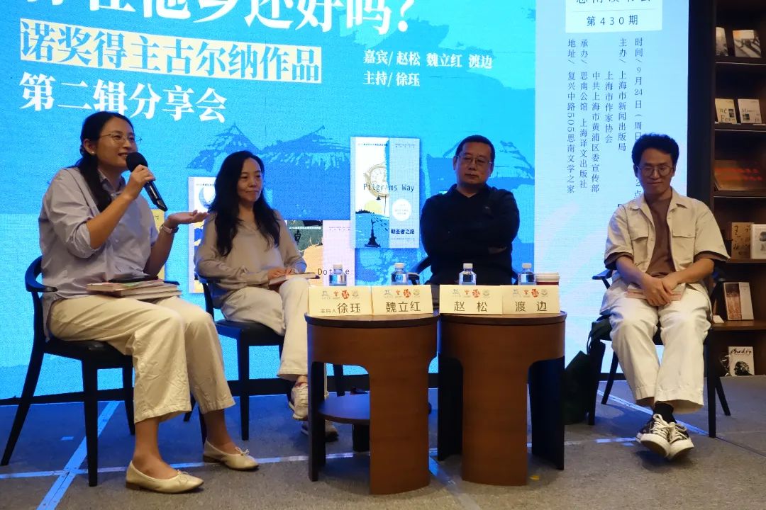 从左至右为徐钰、魏立红、赵松、渡边 撰稿:陆铭 9月24日下午,作家赵松、译者魏立红与读书博主渡边做客思南读书会第430期,共同探讨坦桑尼亚作家阿卜杜勒拉扎克·古尔纳作品中的异乡人主题以及诺贝尔文学奖。编......