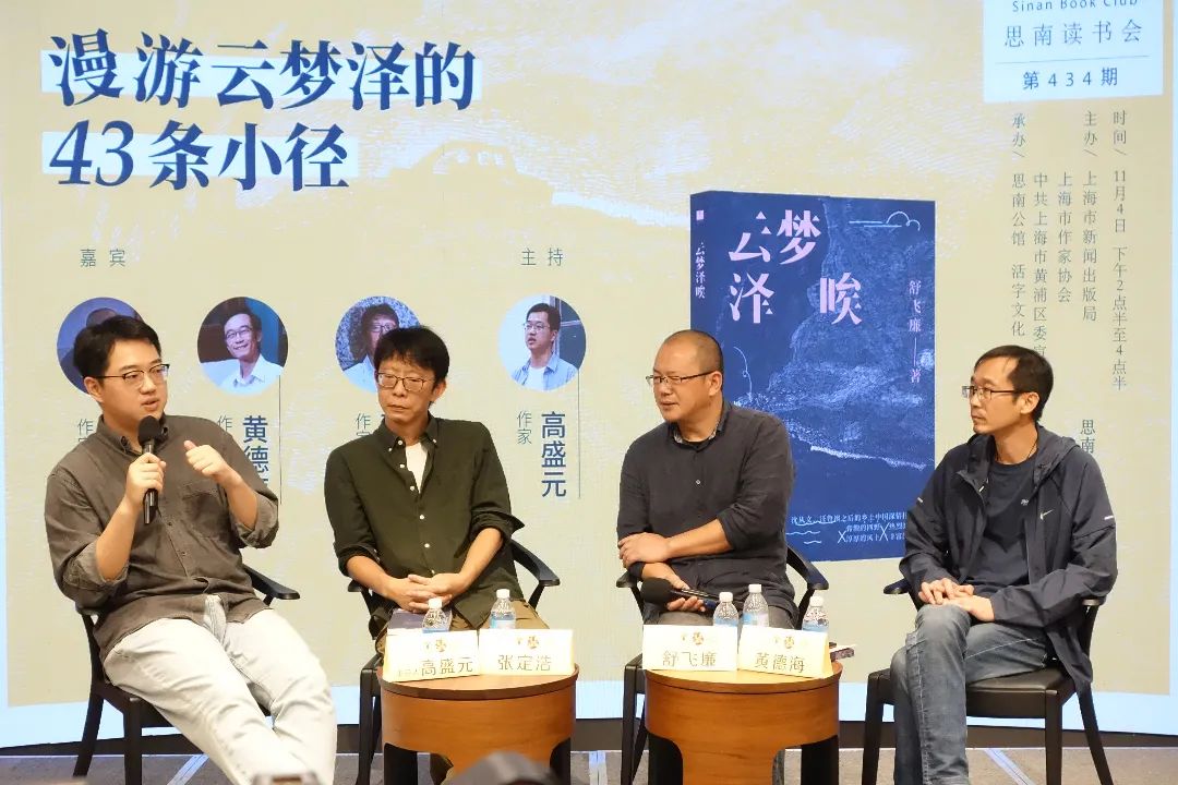 从左至右为高盛元、张定浩、舒飞廉、黄德海 撰稿:闵佳麟 2023年11月4日,张定浩、黄德海、舒飞廉做客思南文学之家,第434期思南读书会如期展开。本次对谈由高盛元主持,以“漫游云梦泽的43条小径”为主题,从舒飞廉新书《云梦泽唉......