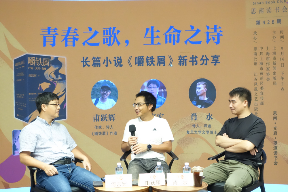 从左至右为何言宏、甫跃辉、肖水 撰稿:蔡圣辉 9月16日下午,甫跃辉携新书《嚼铁屑》与评论家何言宏、诗人肖水做客思南读书会428期,共同探索微尘众生的生命秘境。 “嚼铁屑”的精神 《嚼铁屑》是80后作家甫跃辉历时11年完成的长篇......