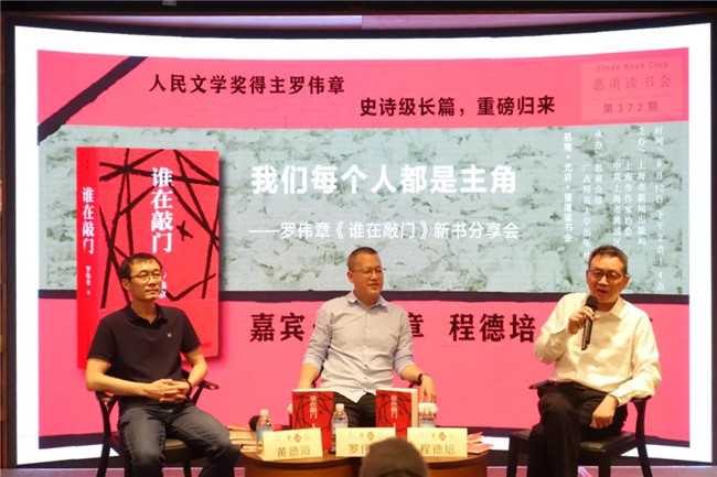 从左至右为 黄德海 、 罗伟章 、 程德培 6月12日下午,作家罗伟章携其长篇新作《谁在敲门》做客第372期思南读书会,与评论家程德培、《思南文学选刊》副主编黄德海一起,透过家族的琐碎悲欢洞察一个时代的落幕和另一个时代的登场......