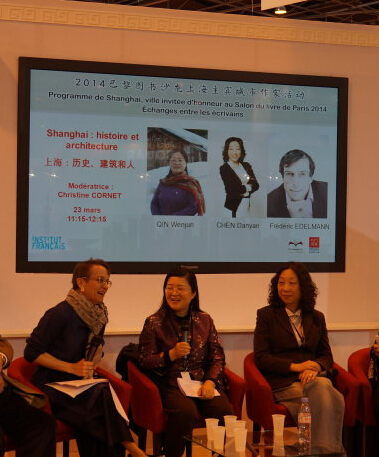 2014年3月23日中午,在巴黎图书沙龙的上海展区,上海女作家秦文君、陈丹燕和法国作家 Fredenc EDELMANN 同台对谈《上海:历史、建筑和人》。对谈结束后两位女作家为读者签名并交谈。 ......