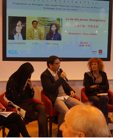 2014年3月23日下午,上海年轻作家路内和周嘉宁与法国女作家 Luisa PRUDENTINO 在巴黎图书沙龙上一起对谈《上海年轻作家的生活》。对谈结束后,路内和周嘉宁为读者进行签名售书。 ......