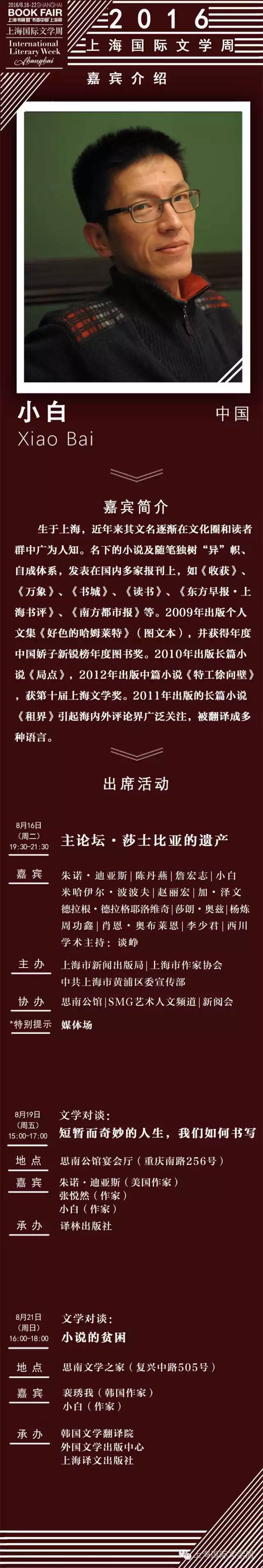 【人物】2016上海国际文学周嘉宾名录之小白