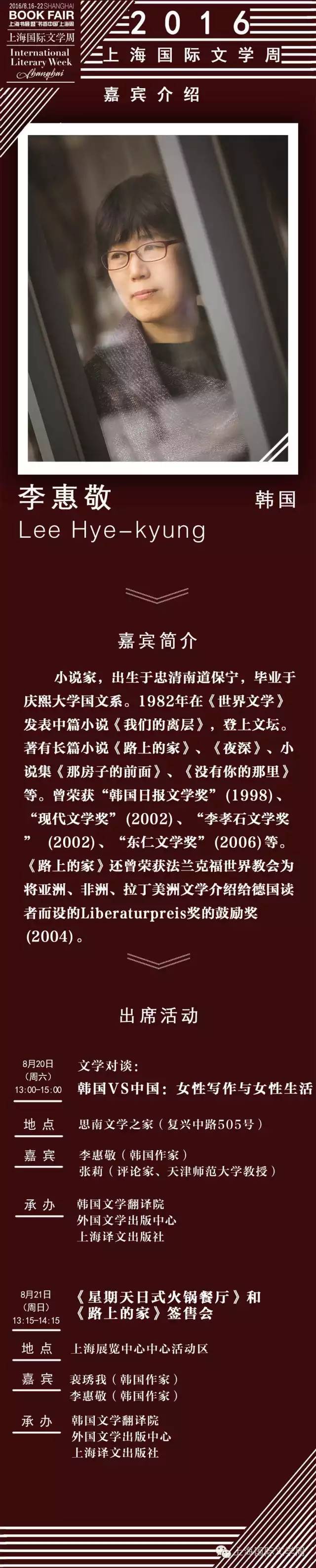 【人物】2016上海国际文学周嘉宾名录之李惠敬