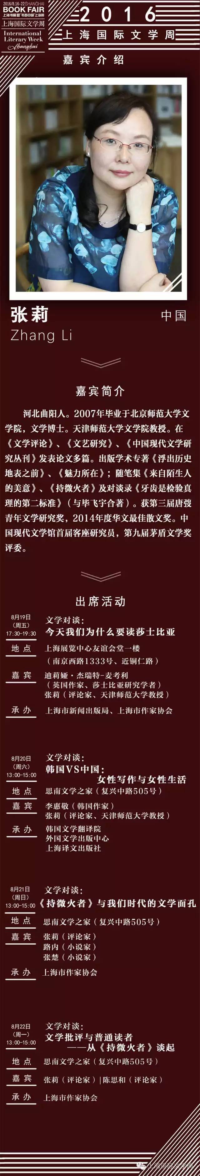 【人物】2016上海国际文学周嘉宾名录之张莉