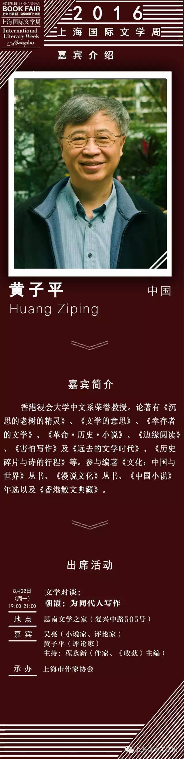 【人物】2016上海国际文学周嘉宾名录之黄子平