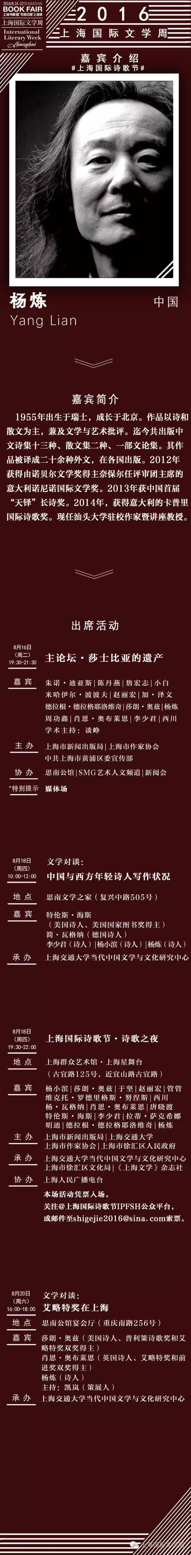 【人物】2016上海国际文学周嘉宾名录之杨炼
