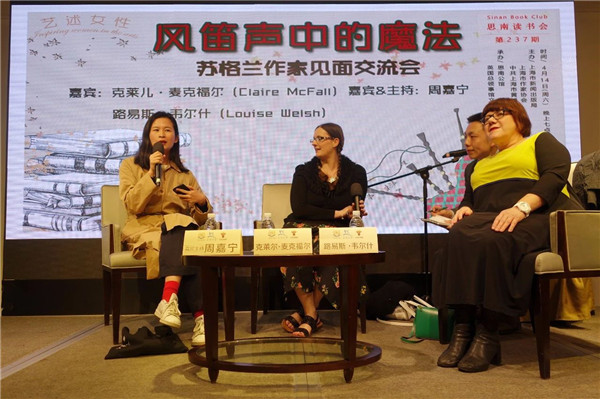 4月14日晚上,第237期思南读书会迎来了两位来自苏格兰的作家:畅销书《摆渡人》系列的作者克莱儿·麦克福尔(Claire McFall)和心理惊悚小说家路易斯·韦尔什 (Louise Welsh),她们与青年作家周嘉宁展开了一场别开生面的对谈,分享了自己对自然环境对写作的影响、小说家身份的探讨、文学类型的划分等话题的思考。