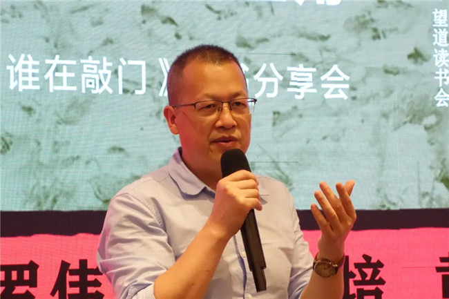 谈到创作缘起,罗伟章谈到2016年秋被四川省作协派到雅安市芦山县文联挂职的经历。那里曾于2013年经历了一场大地震,他每天在县城各处行走、观察,很多东西积累在心里。有一天,他来到县城里的根雕一条街,走进一家店,店里冷冷清清。他事先声明,自己只看不买,但老板还是热情地带他看这看那,还喊老婆把茶泡好。在这个偏远的地方,罗伟章感到了孤独和寂寞,那是自己的,也是别人的。从根雕店回到宾馆后,他写下了一句话:“有时候,敲门声是人的脸,也是人的心,哪种人敲出哪种声音,就跟哪种人会说出哪种梦话一样。”这就是小说《谁在敲门》的第一句。