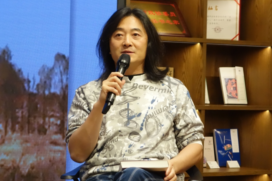 周小平解释,书中的很多细节是他自己的经历、个人的回忆,,像是自传体,但也会有很多问题可以去思考和探讨。他谈到点画,“点的符号,一块一块形成不同颜色时,俯视看它时,就是一块一块颜色,当细节放大无数倍时就是一个点,像沙粒一样的点。"