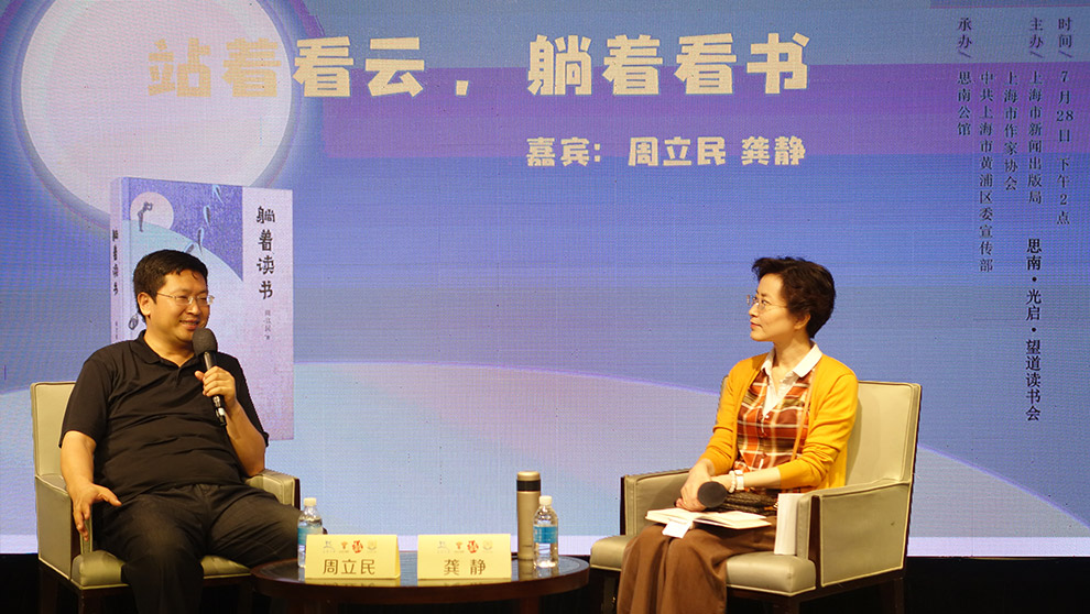 龚静也赞同这个说法,她觉得读书与自己有关,获得的是一种心灵的滋润,而且这种获得是持久的。比如她看《躺着读书》就时常会笑出来,书中展现了大量现代文学家的生活细节,将这些高瞻远瞩的伟大人物还原为一个个普通而鲜活的存在,拉近了历史人物与日常生活的距离。她也同时指出“《躺着读书》好像是一个闲散的姿态,但是它内容是精深的”。