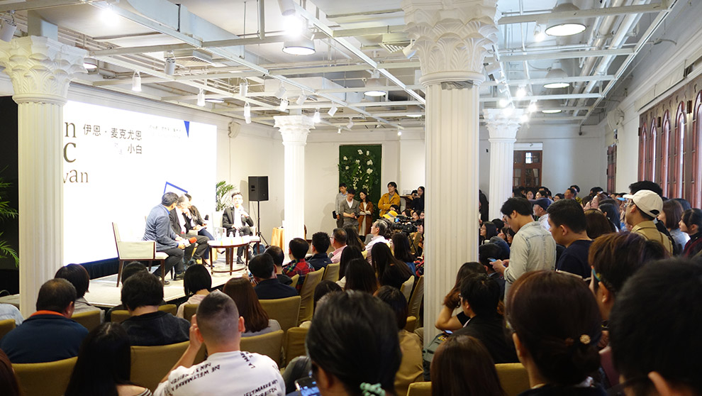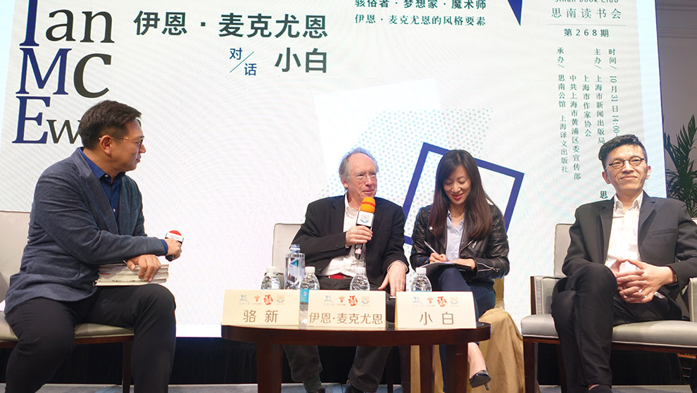 《赎罪》作为麦克尤恩的代表作之一,曾翻拍成电影为人们所熟知。小说用故事嵌套和结局反转的方式讲述了年轻时拆散了一对情侣的布里奥妮的救赎之路。通过这部作品,麦克尤恩分享了一个创作观点:“我觉得写小说最终是看你怎样把控小说信息的传达。所有的信息不能一开始就给出,你要一步一步来。找准一个良好的时机,在某一个转折点把信息一步一步释放出来。”骆新比较了《赎罪》及同名电影,认为小说在文本上交互的优越性是不能超越的。作为麦克尤恩的忠实读者,又是一位小说家,小白表示:“全世界的人一致认为麦克尤恩是个魔术师,最善于把关键信息在时间上做隐藏。”小白提及《甜牙》和《完美的动物》这两本书的共性。“它们体现了在我们这个时代还表现出着对小说极大的信心。对阅读能改变人生、改变世界,对小说的力量还抱有非常大的信心。”